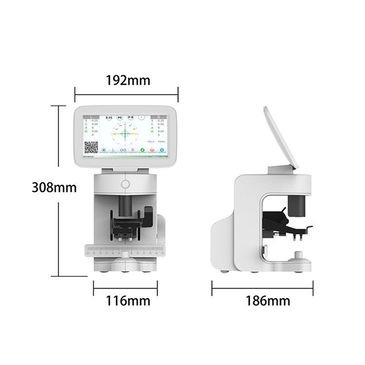LM-002 Auto Lensometer Features: Ø This auto lensmeter is used for measuring the single vision lenses , progressive power lenses, and contact lenses Ø This auto lensmeter has HD full-graphic LCD with full touching screen , which can display both left and right lens’s value Ø The menu is simple and clear to easy to operate. Parameters: Measure scope Sphere 0~±30 0.01 /0.06 /0.12 /0.25 Cylinder 0~+10 0.01/0.12/0.25D steps Axis 0°~180° (1°step) ADD 0~ 10 0.01/0.12/0.25 prism degree 0~15 Δ 0.01/0.12/0.25 Δ steps Mode Cylinder +,+/-,- Prism X-Y,P-B Contact lens Soft/hard Measuring mode Single/progressive/ automatic recognition / contact lens Others Diameter of lens Ø 20~108mm PD: 45~80mm, 0.25mm steps ABBE 30~60 Display LFT LCD (7″) Printer Thermal print Dimensions 192x308x116mm Package 37*35*17cm Weight ~5KG Power supply 100~120V/200~220V 50/60HZ